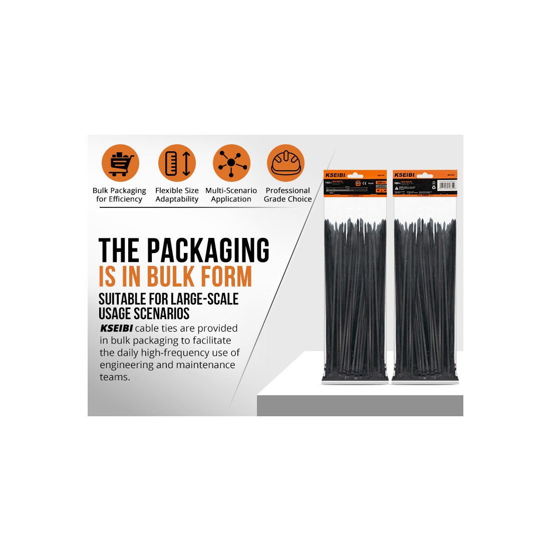 توفّر كسيبي هذه الأربطة بكميات كبيرة لتلبية احتياجات المشاريع المتوسطة والكبيرة، مما يجعلها خيارًا مثاليًا للمهنيين في مجالات الكهرباء، الهندسة، أو أي صناعة تحتاج إلى تنظيم متين ومرتب للكابلات.