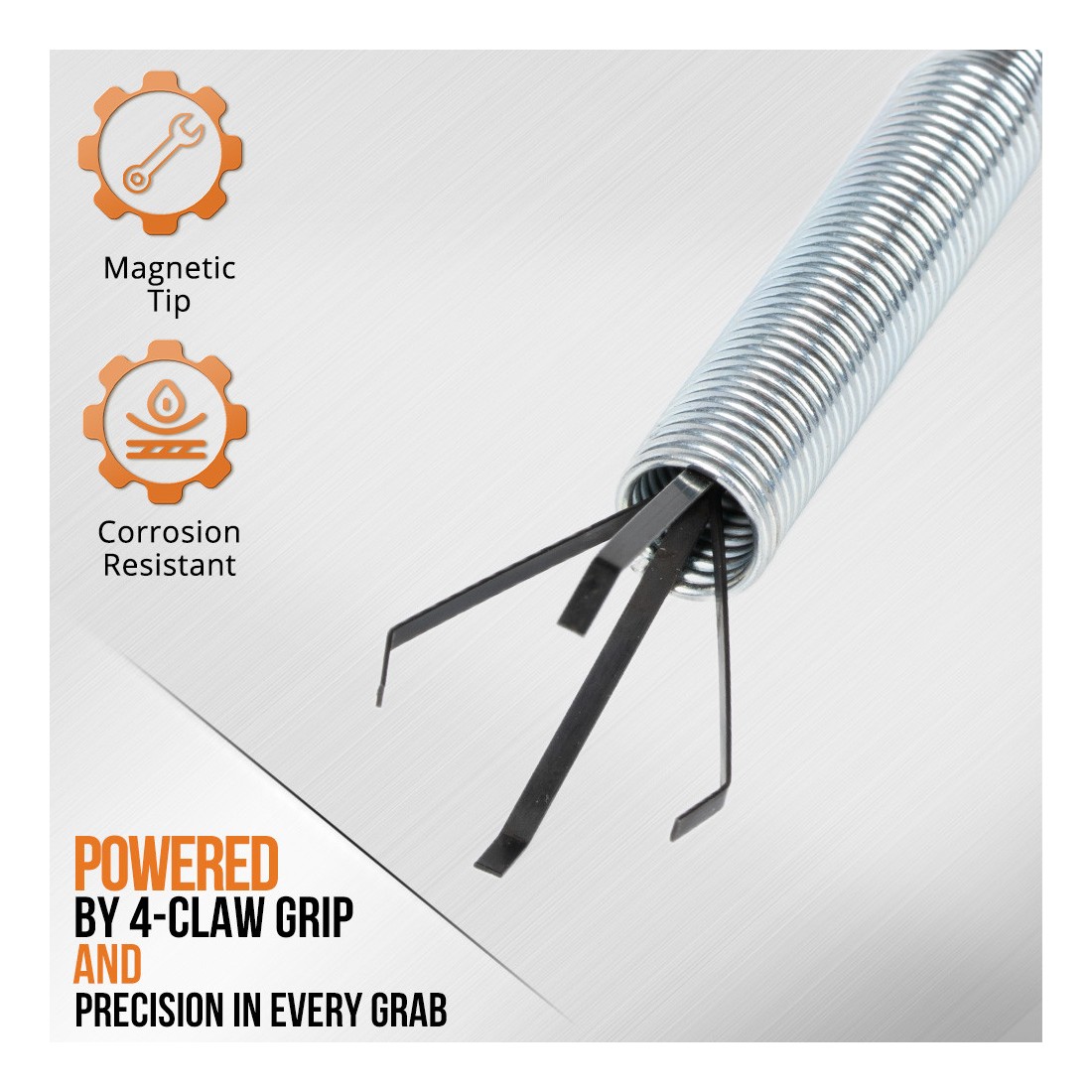 " flexibler Federkrallen-Greifer zum einfachen Greifen von Metallgegenständen.