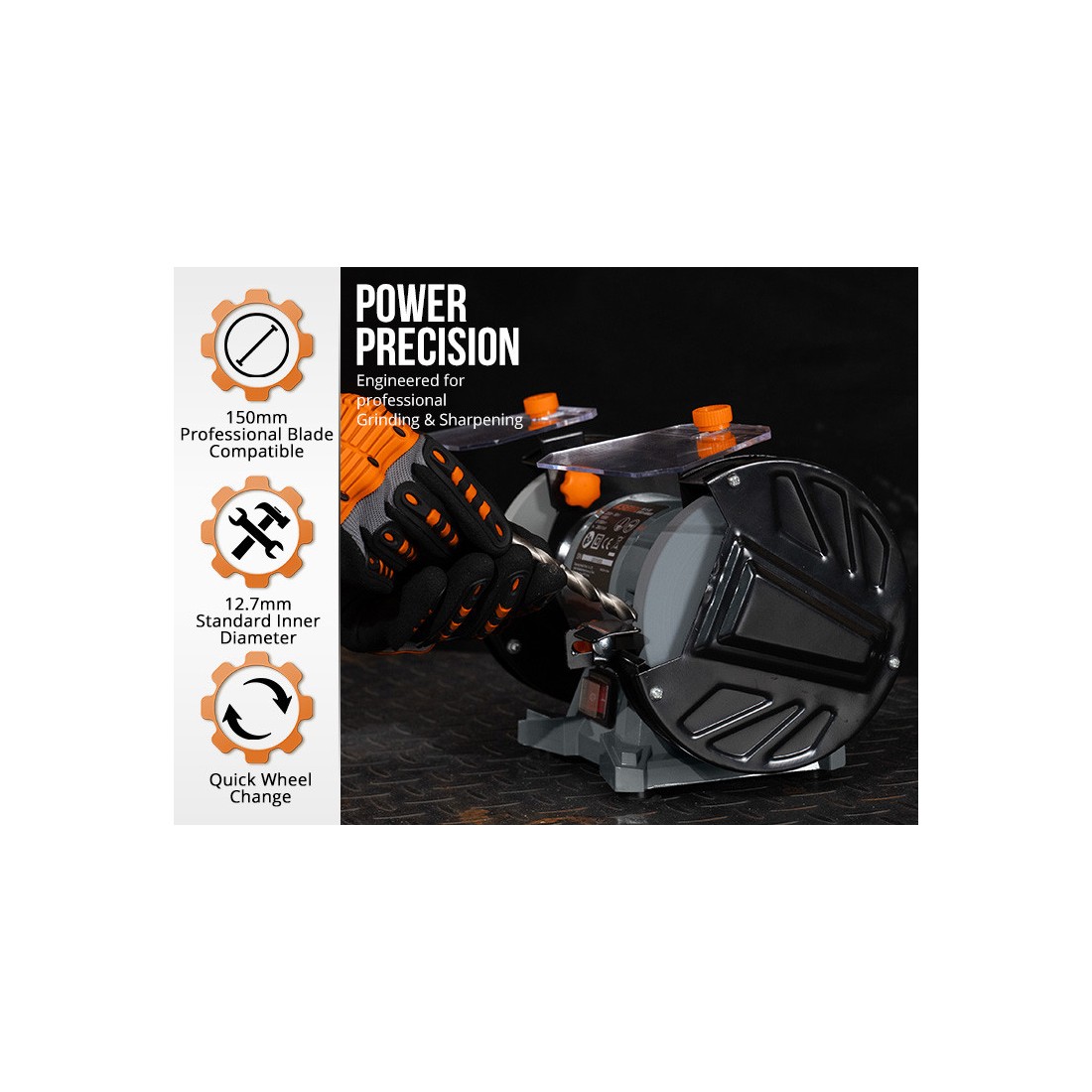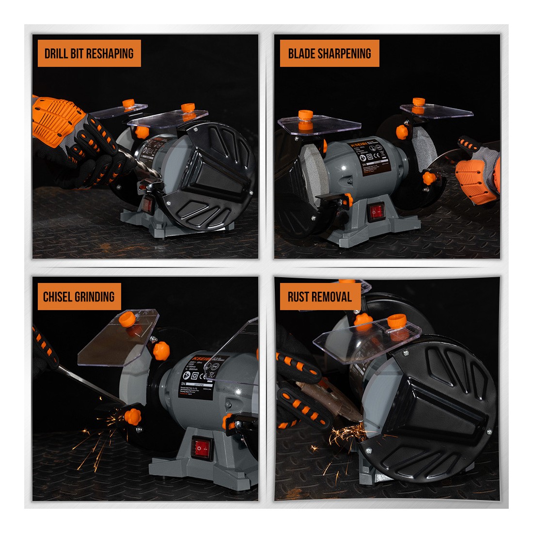 Die Tischschleifmaschine von KSEIBI bietet präzises und zuverlässiges Schleifen für unterschiedlichste Anwendungen in Werkstätten und industriellen Umgebungen. Mit ihrem robusten Gehäuse und einer leistungsstarken Motorleistung ist sie ideal für das