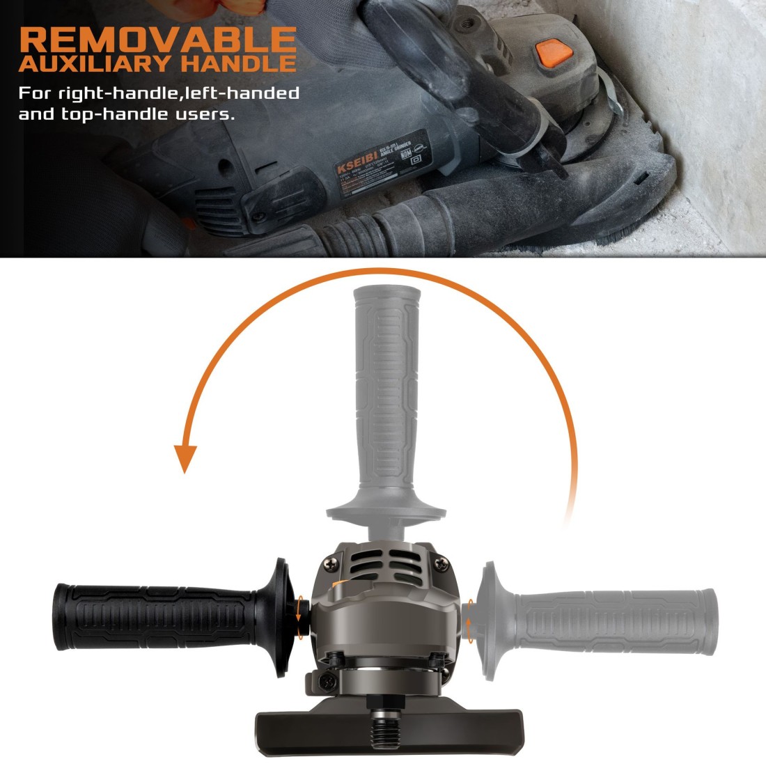 - Großer Bügel-Zusatzgriff für kontrolliertes Führen