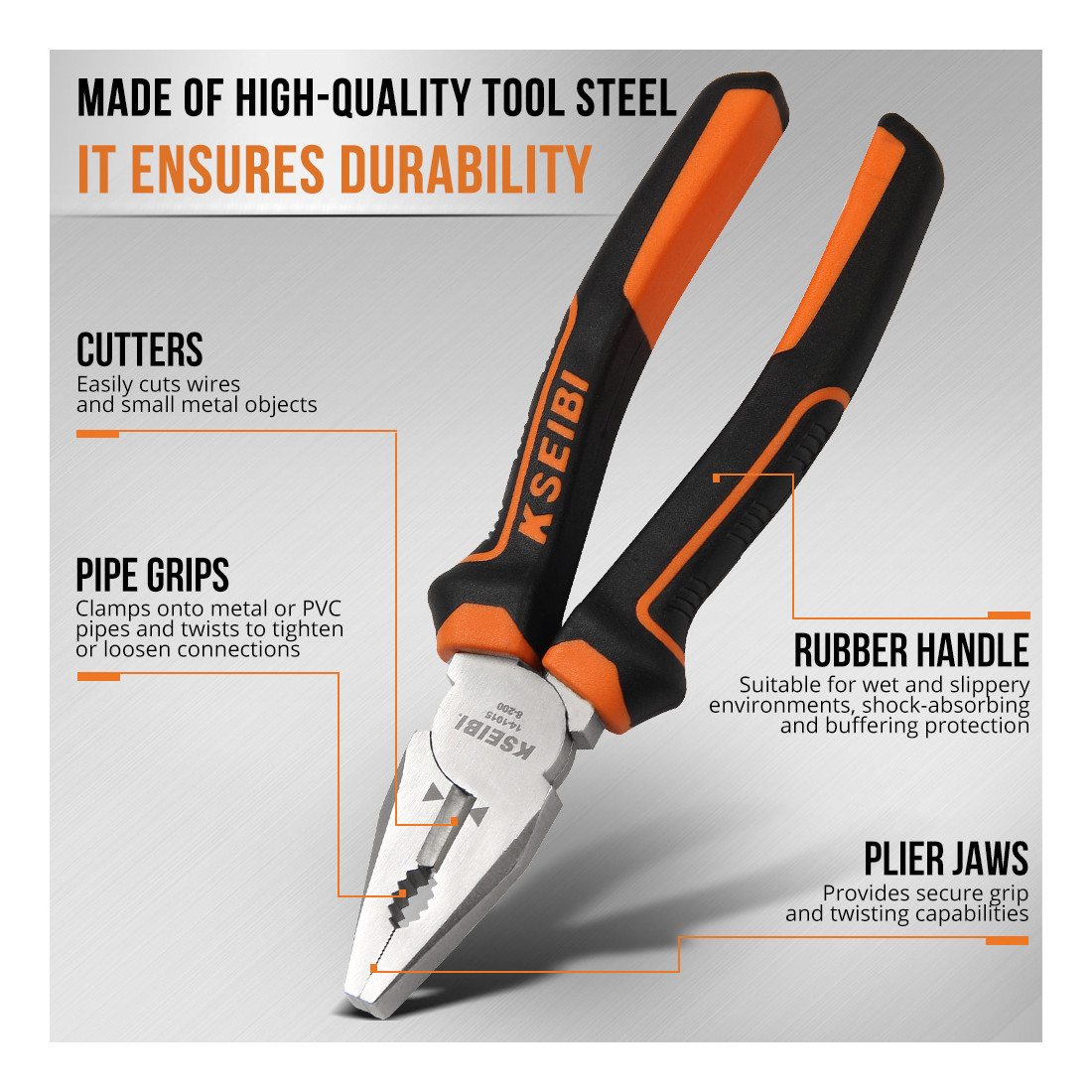 Die KSEIBI Kombizange (6") vereint Präzision und Langlebigkeit in einem Werkzeug, das für vielseitige Anwendungen in Industrie und Handwerk entwickelt wurde. Hergestellt aus hochwertigem Werkzeugstahl und mit einer langlebigen Nickelbeschichtung versehen, bietet sie ausgezeichneten Schutz vor Korrosion und Abnutzung – selbst bei intensiver Nutzung.