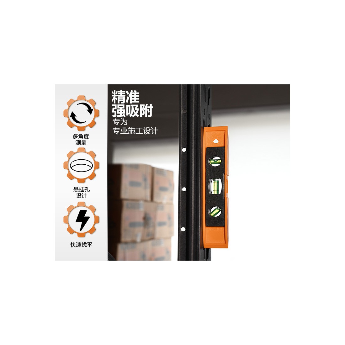 Gefertigt aus robustem ABS-Material, bietet die Wasserwaage eine langlebige und stoßfeste Konstruktion, die den Anforderungen anspruchsvoller Baustellen standhält. Die drei gut ablesbaren Libellen ermöglichen eine präzise Ausrichtung in horizontaler, vertikaler und 45-Grad-Position – perfekt für vielseitige Messanforderungen.