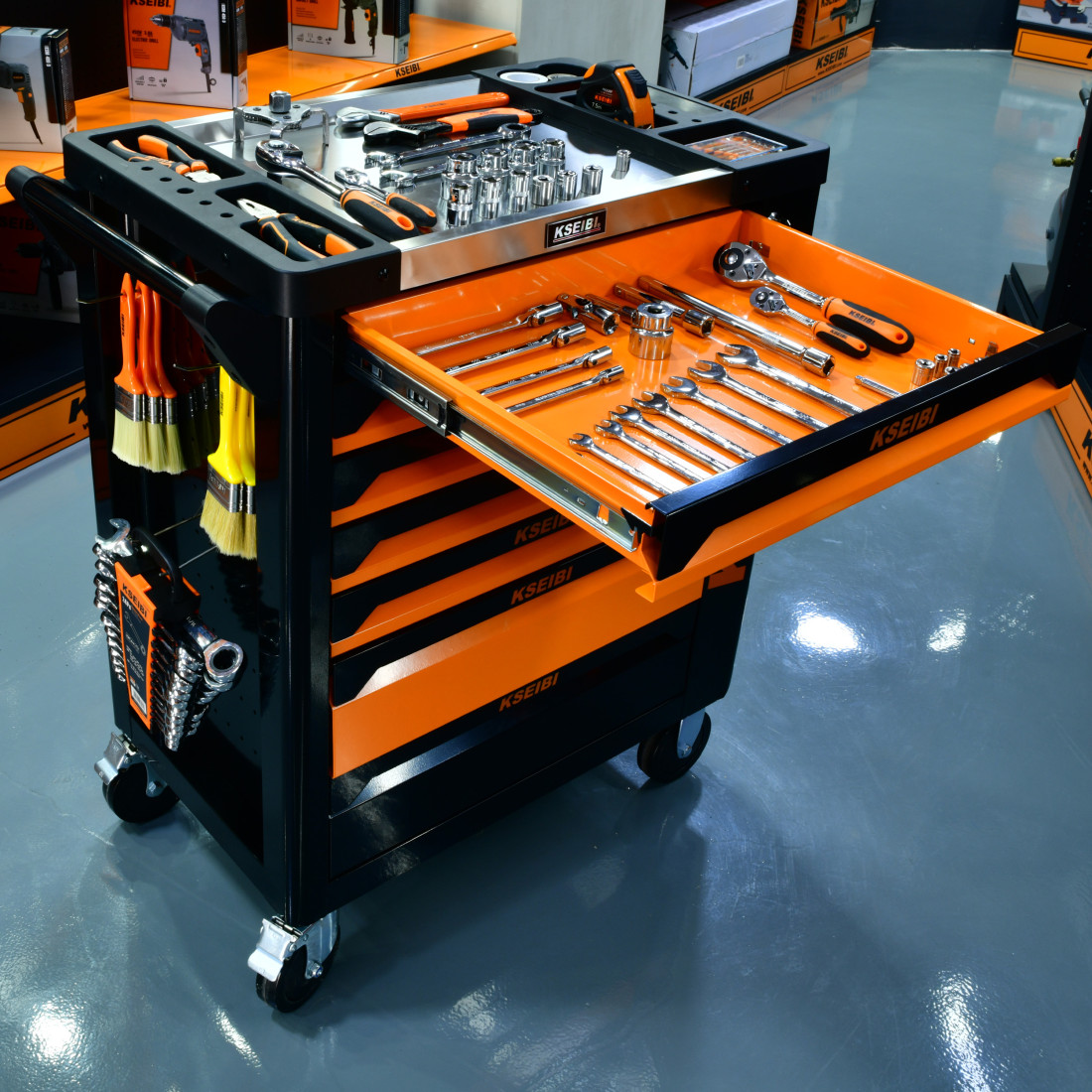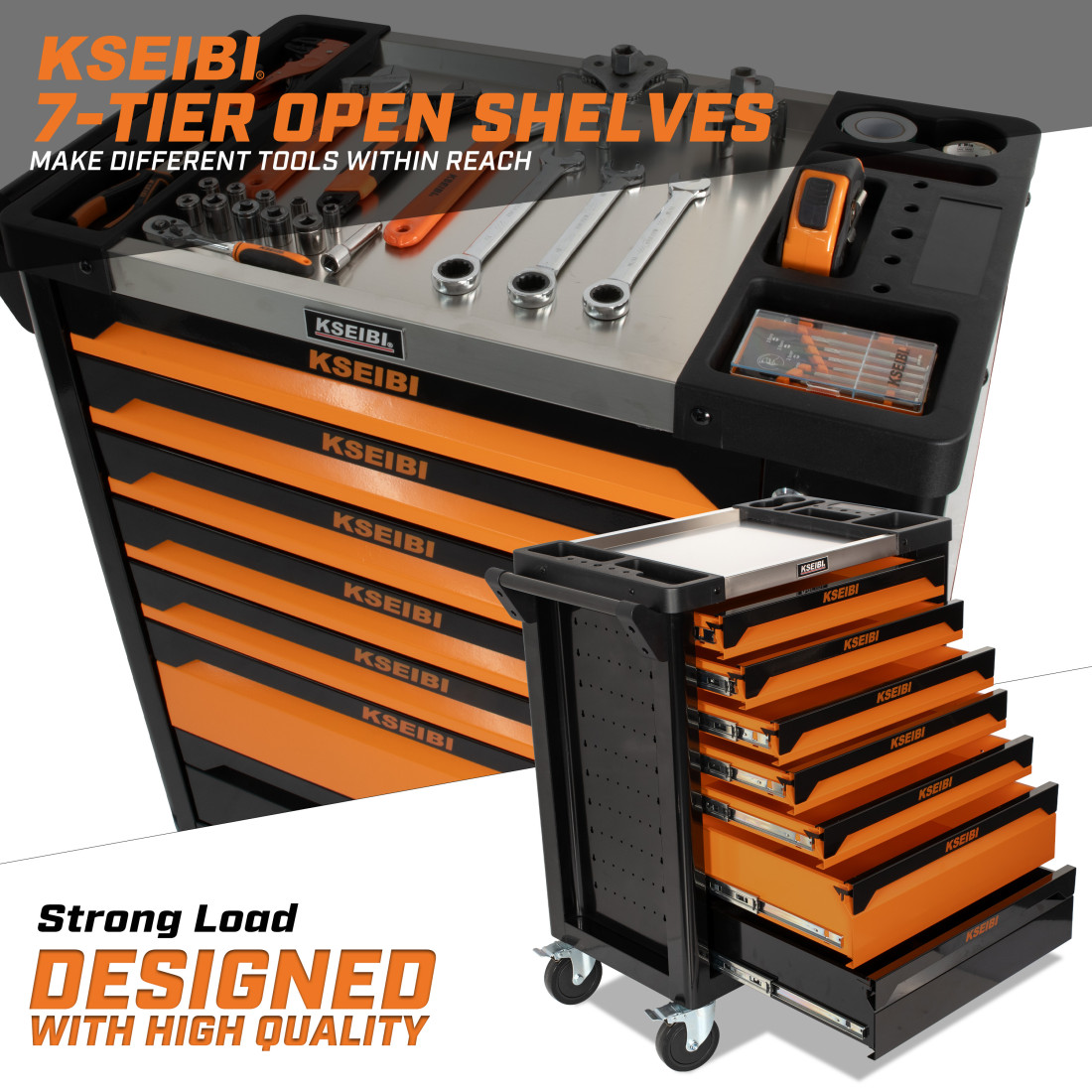Το Ερμάριο Εργαλείων με 7 Συρτάρια της KSEIBI είναι μια αξιόπιστη επιλογή για επαγγελματίες που χρειάζονται ανθεκτικότητα, λειτουργικότητα και ασφάλεια στον εξοπλισμό τους. **Σημείωση:** Τα εργαλεία και τα αξεσουάρ που εμφανίζονται στις εικόνες δεν περιλαμβάνονται.