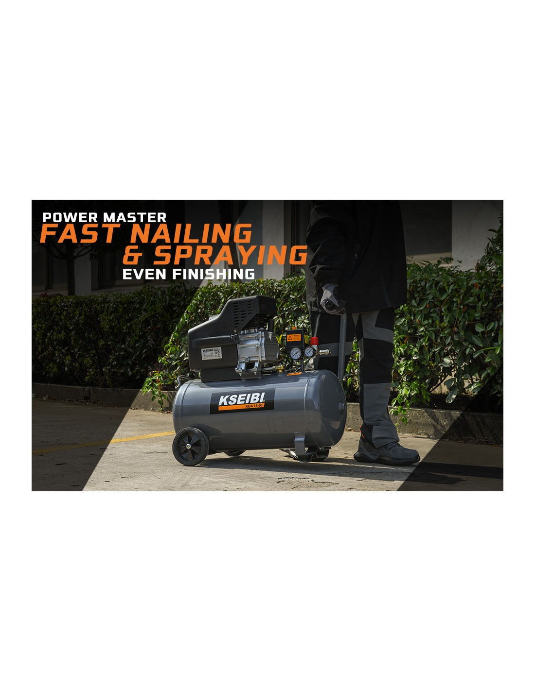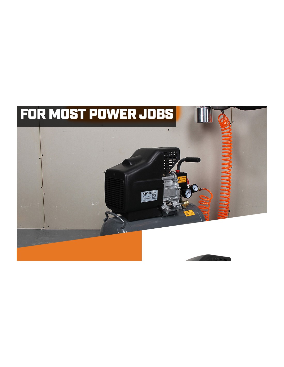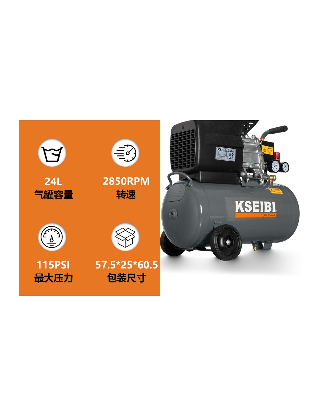 KSEIBI KDA 15-24, Compresor de aire 24 l, 2 HP Este compresor portátil ofrece un suministro de aire estable para soplar, inflar, accionar clavadoras y herramientas neumáticas ligeras en talleres,