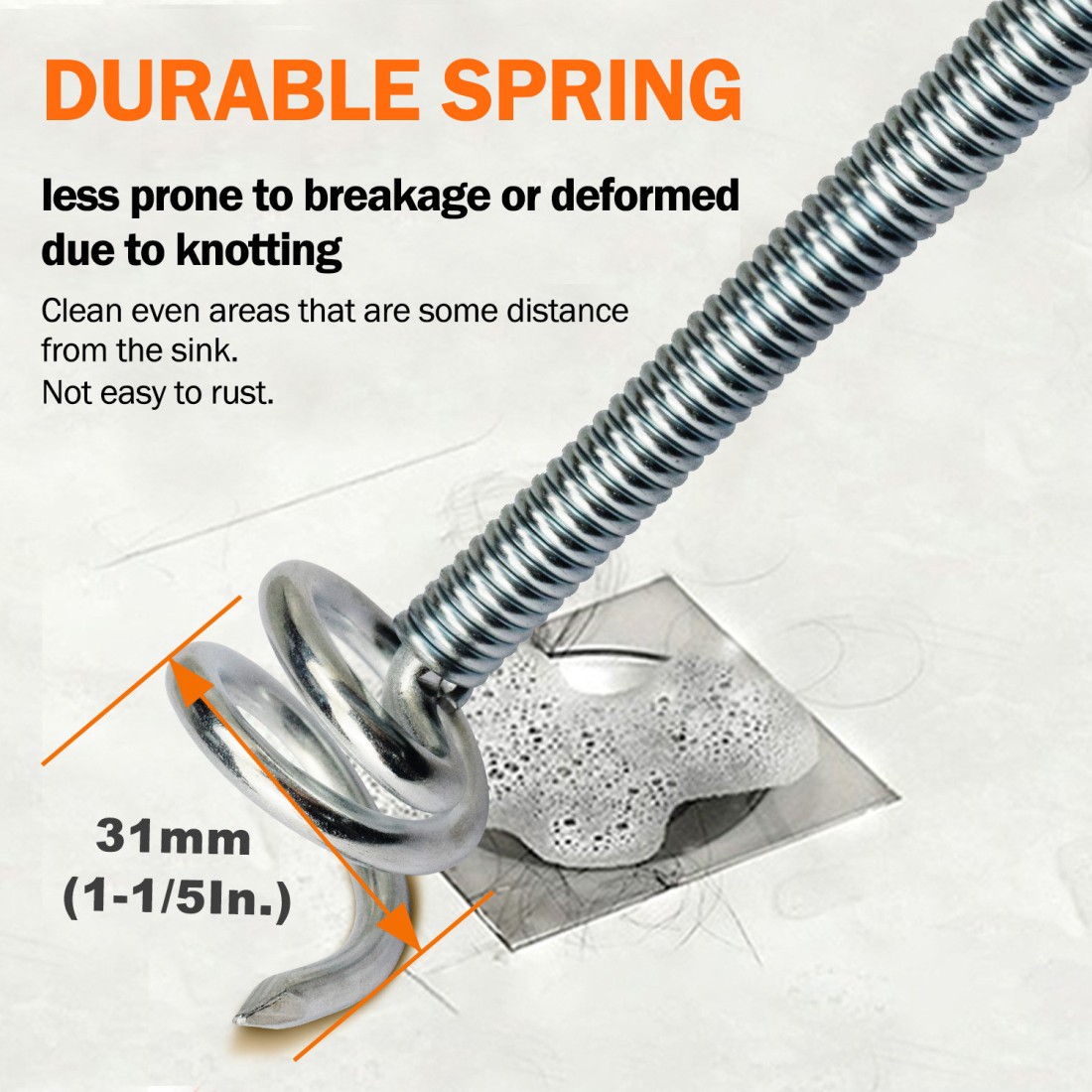 - Herramienta versátil para desagües de baño, cocina, y otras aplicaciones comunes.