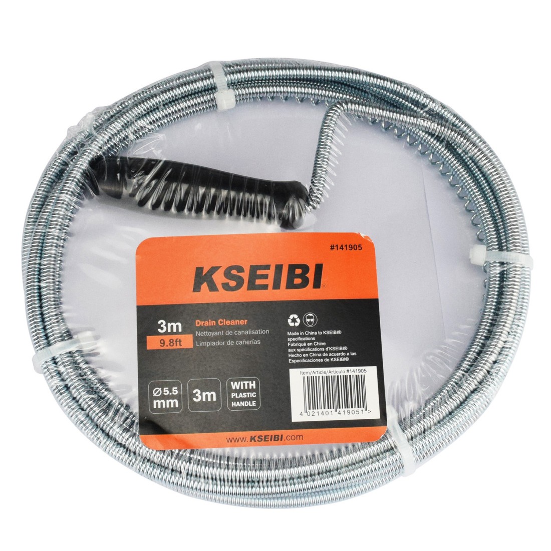 El **Limpiador de desagües KSEIBI** es una herramienta práctica y eficiente diseñada para destapar tuberías obstruidas de manera rápida y efectiva. Con una longitud de 3.0 metros y un diámetro de 5.5 mm, ofrece la flexibilidad y alcance necesarios para eliminar residuos acumulados en desagües domésticos e industriales.