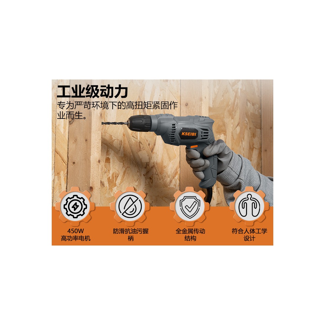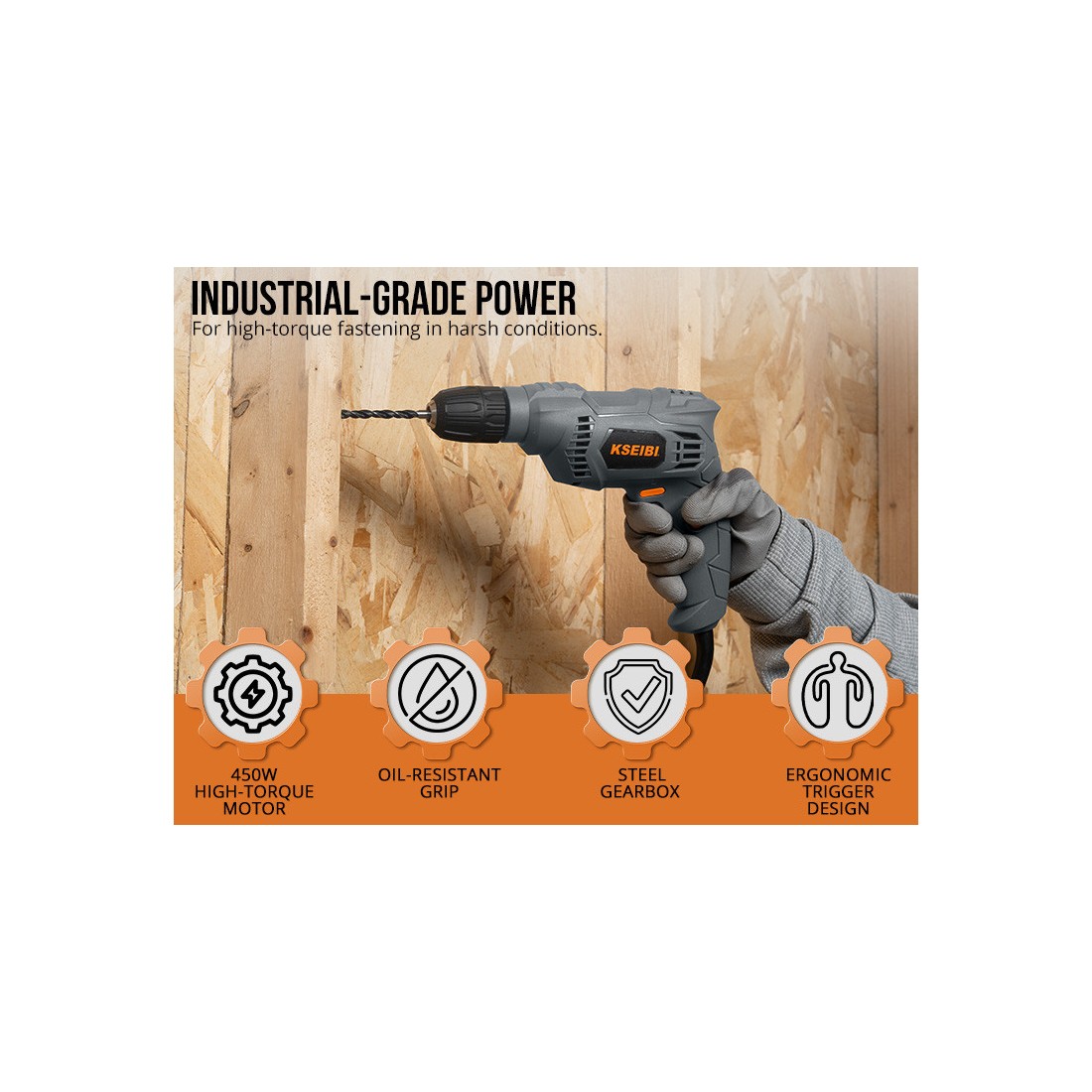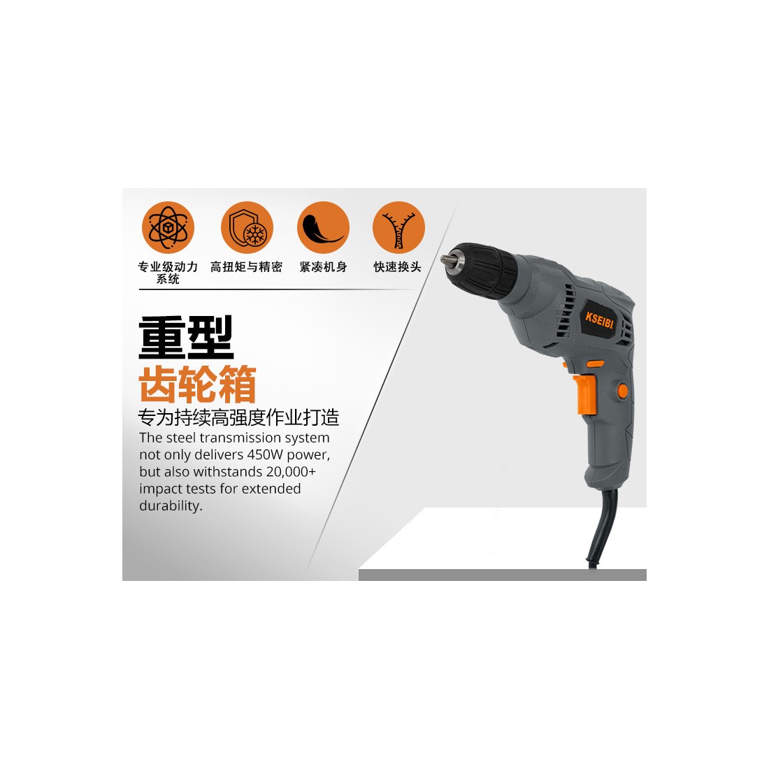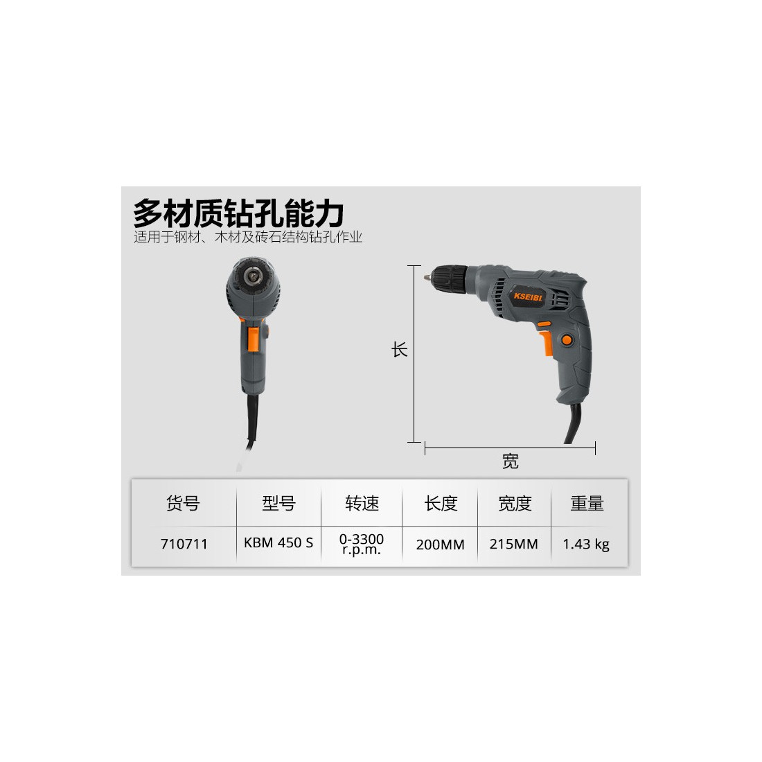 KSEIBI KBM 450 S, Taladro eléctrico 10mm sin llave, 450W