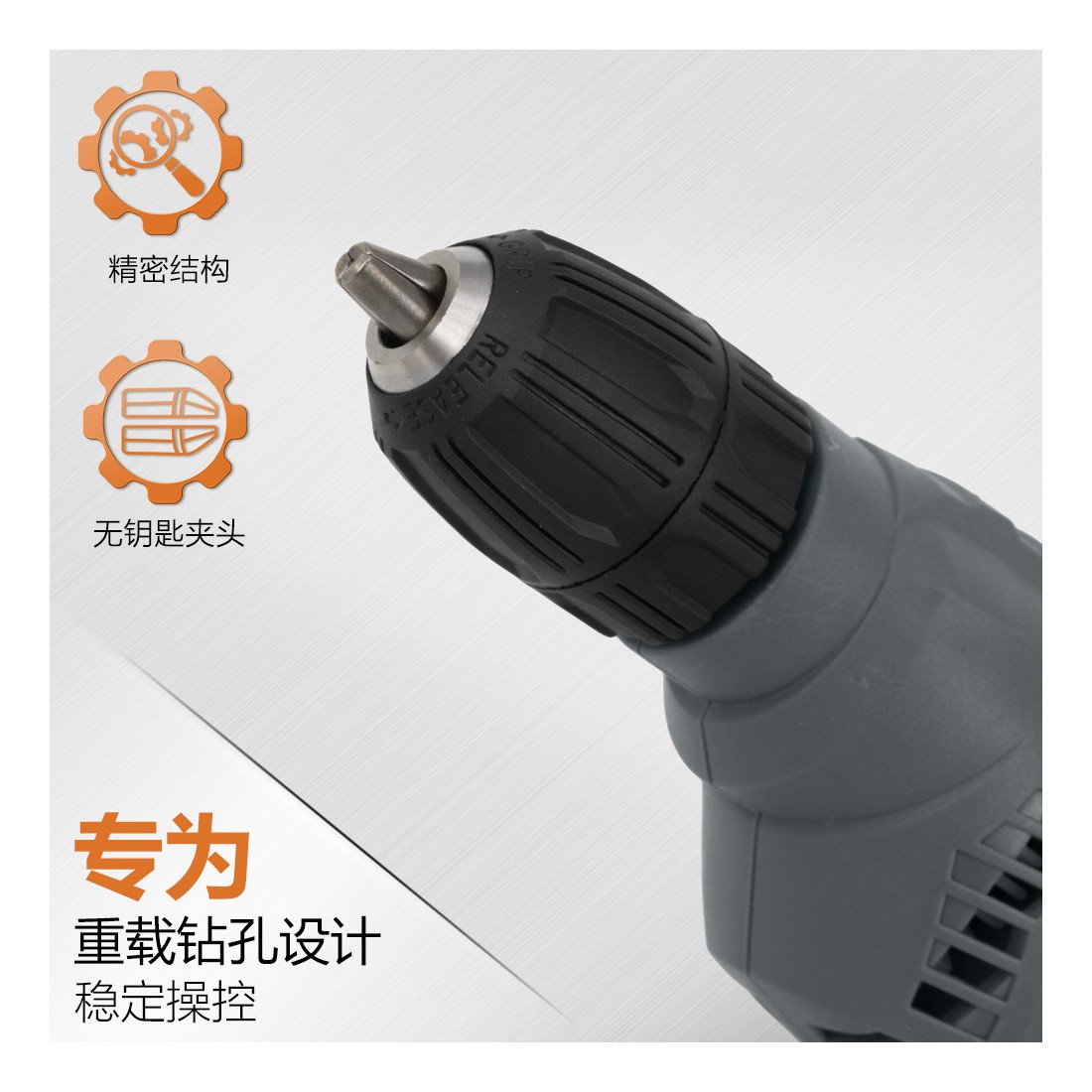• Mandril sin llave de 10 mm para cambios rápidos y fáciles de broca.