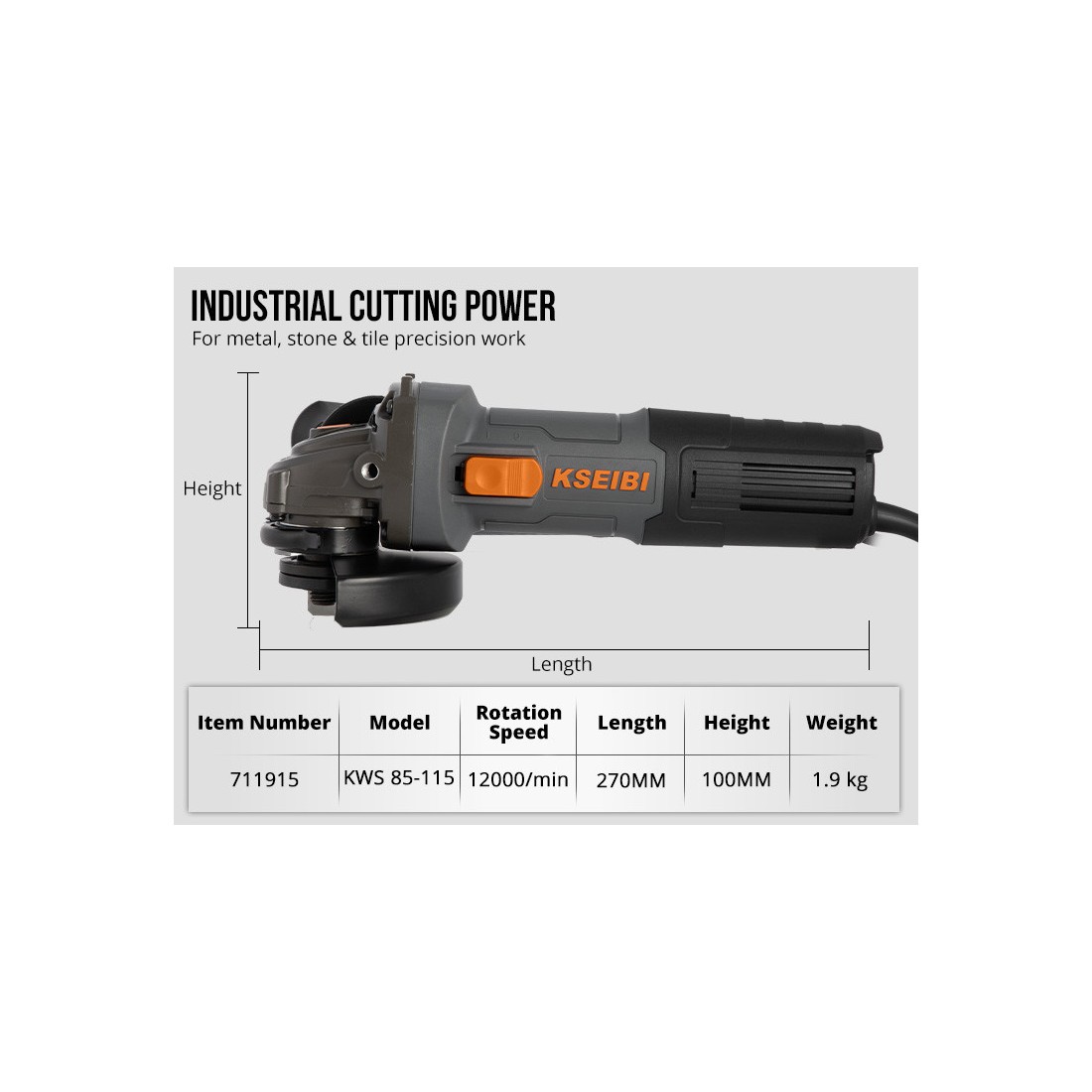 La Amoladora Angular KWS 85-115 de KSEIBI combina potencia y precisión en un diseño compacto, perfecta para trabajos de corte y desbaste. Con un disco de 115 mm y un