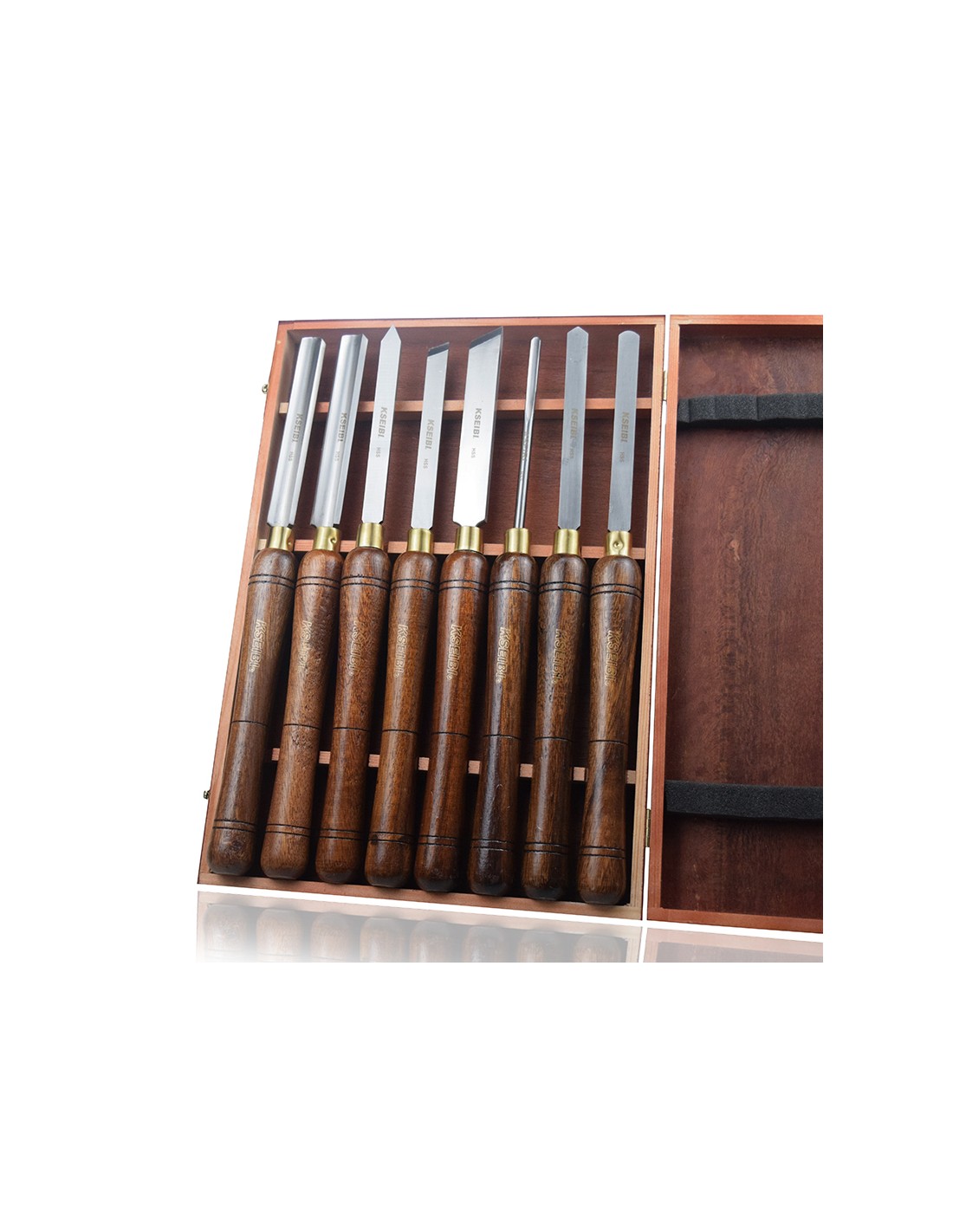 El juego viene presentado en una caja de madera robusta, que no solo facilita su almacenamiento y transporte, sino también protege las herramientas de daños. Con la confiabilidad y precisión que caracteriza a KSEIBI, este conjunto es una adición esencial para cualquier taller de torno en madera.