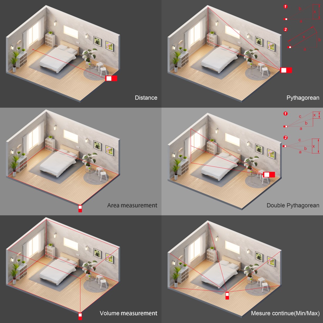 • Funcionalidad versátil para mediciones lineales, áreas y volúmenes.