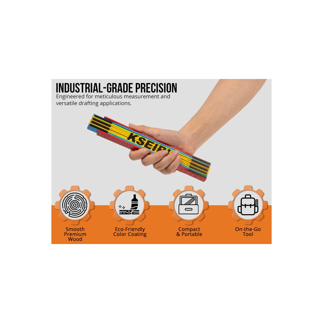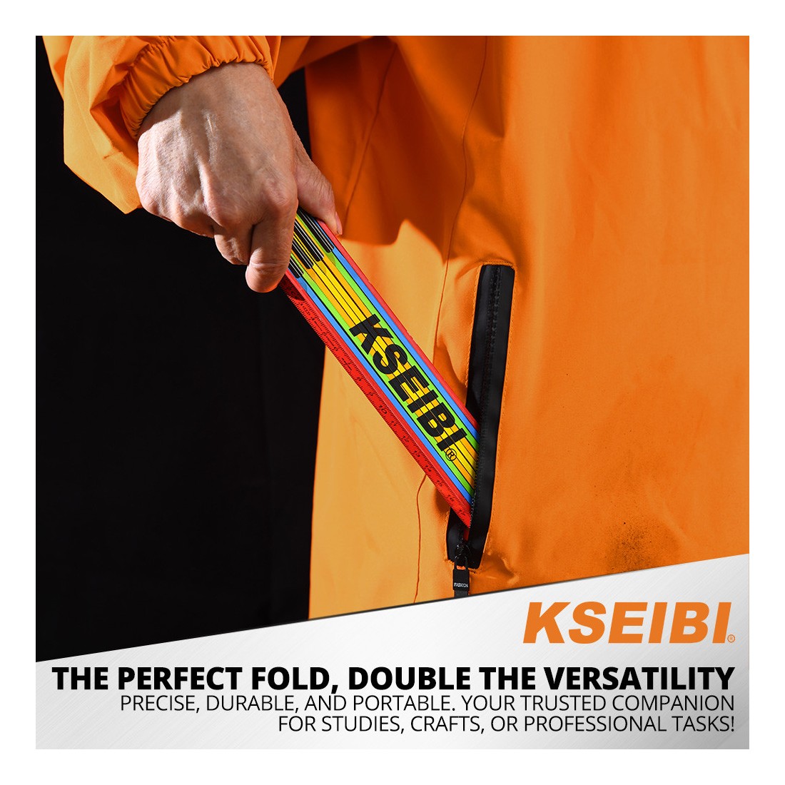 Empacada en una tarjeta colgante para un acceso rápido, la regla plegable de madera KSEIBI refleja el compromiso de la marca con herramientas fiables y eficientes.
