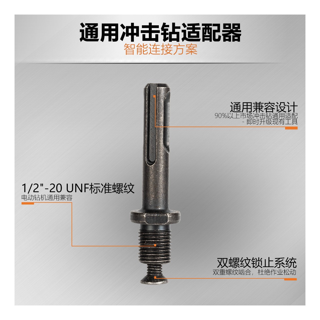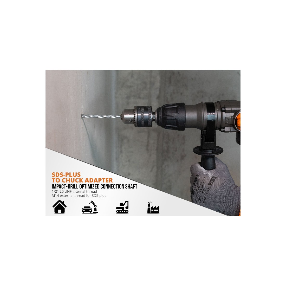 Adaptador compatible con mandriles SDS-plus y roscas de 1/2"-20 UNF.