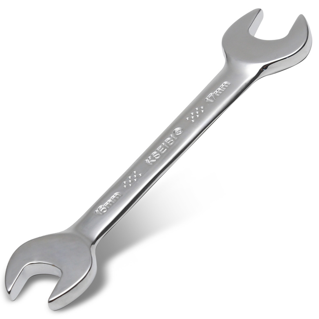 La llave de extremo abierto doble de KSEIBI combina durabilidad y precisión en una herramienta esencial para trabajos exigentes. Fabricada con resistente acero cromo vanadio y acabada con un pulido espejo, esta llave ofrece una excelente resistencia al desgaste y a la corrosión, asegurando una vida útil prolongada incluso en entornos de trabajo intensos.