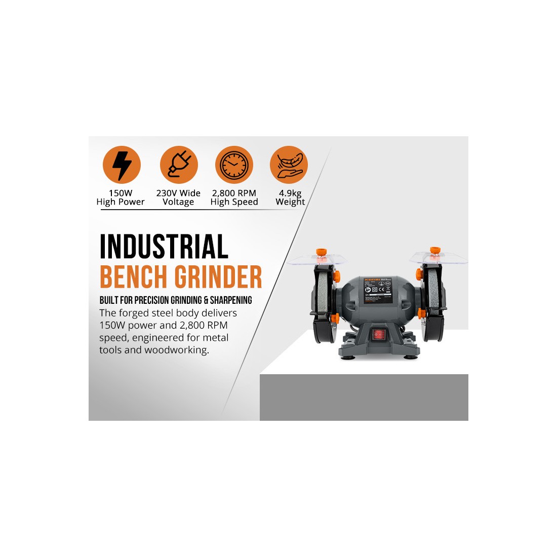 KBG 15-150, ، سنگ رومیزی ۱۵۰ میلیمتر، ۱۵۰ وات — ابزار استحکام و اعتماد | ساخت برای کارهای سخت و مداوم