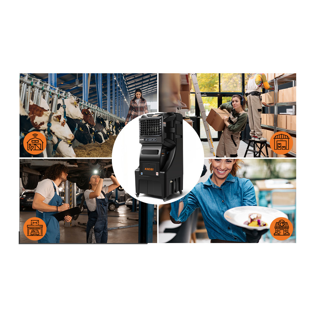 Le rafraîchisseur d’air KSEIBI KAC 35-70 M est une solution mobile pour abaisser la température et améliorer le confort dans les espaces de travail ouverts. Fonctionnant par évaporation, il diffuse un flux d’air frais et humide qui aide à réduire la chaleur sensible tout en consommant peu d’énergie (350 W).