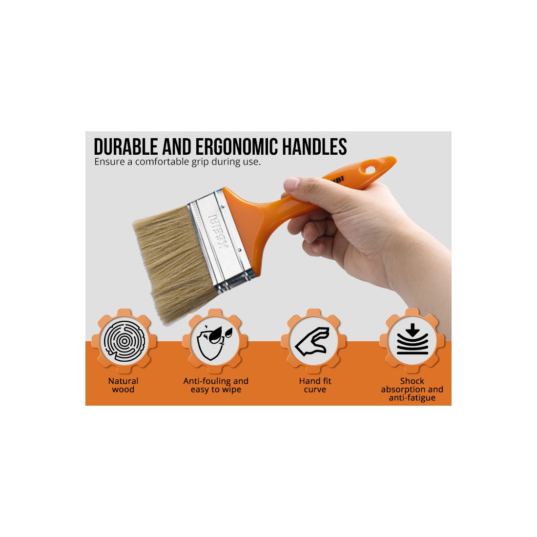 L’ensemble de 3 pinceaux de peinture professionnels KSEIBI est conçu pour s’adapter à une large gamme de tâches de peinture, qu’il s’agisse de travaux de précision, de finitions détaillées ou de surfaces plus larges. Chaque pinceau est doté d’un manche robuste et ergonomique, offrant une prise en main confortable et un contrôle optimal, même lors d’un usage prolongé.