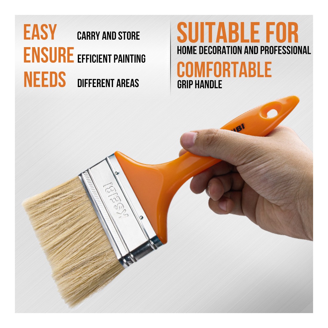 Il set di pennelli per vernice KSEIBI da 3 pezzi è progettato per affrontare un'ampia gamma di lavori di pittura con precisione e facilità. Ogni pennello è dotato di un manico ergonomico e resistente, offrendo una presa sicura e confortevole anche durante utilizzi prolungati.