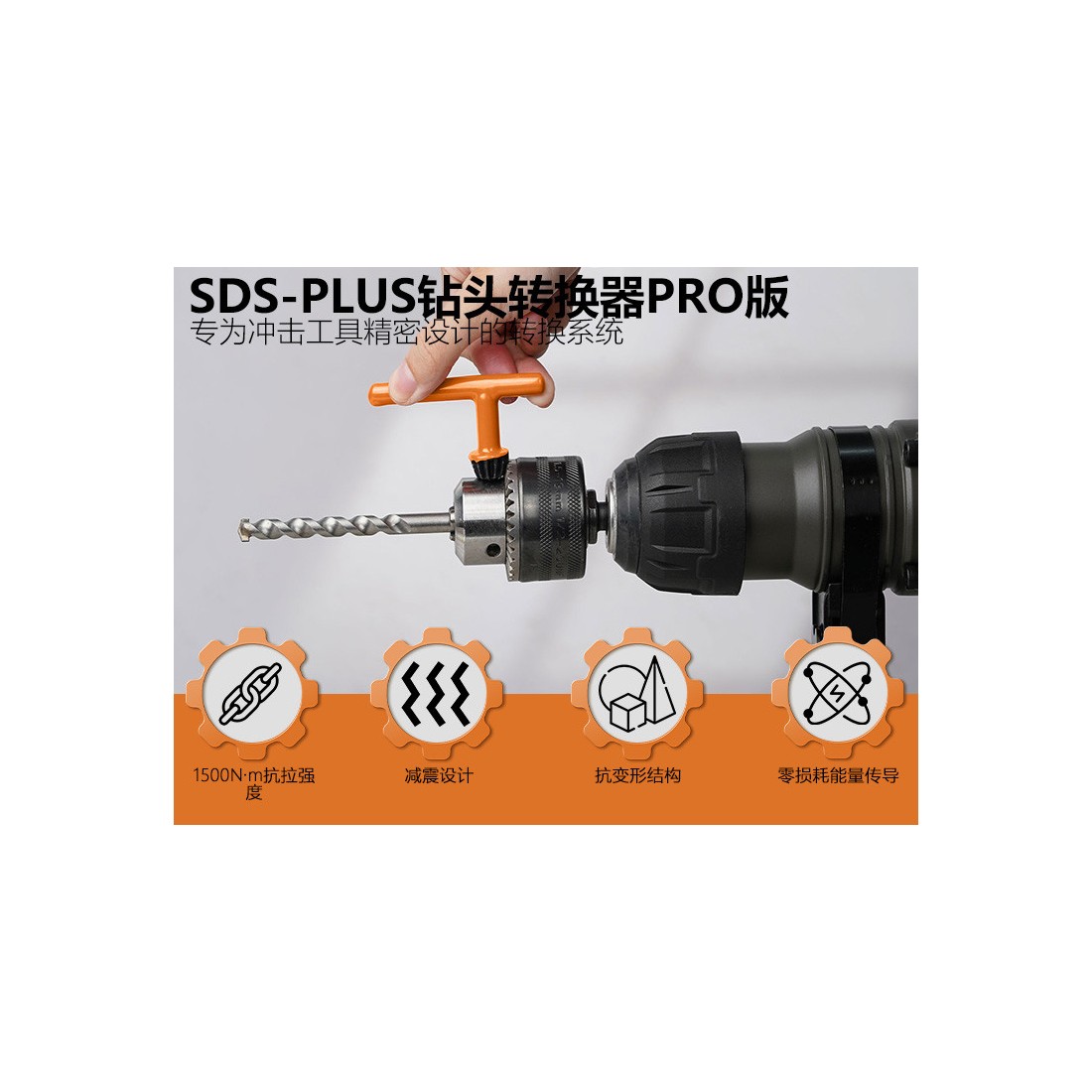 Adattatore compatibile con sistemi SDS-plus per una connessione sicura e stabile.