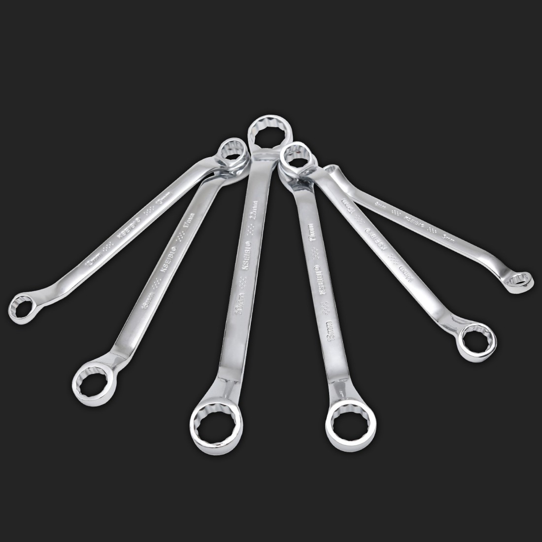 KSEIBIの両口リングレンチは、機械作業に最適なツールとして設計されています。クロムバナジウム鋼を使用し、耐久性と強度を兼ね備えた信頼性の高い作りが特徴です。ミラーフィニッシュ仕上げにより、錆びや腐食に強く、清掃も簡単で長期間の使用に適しています。