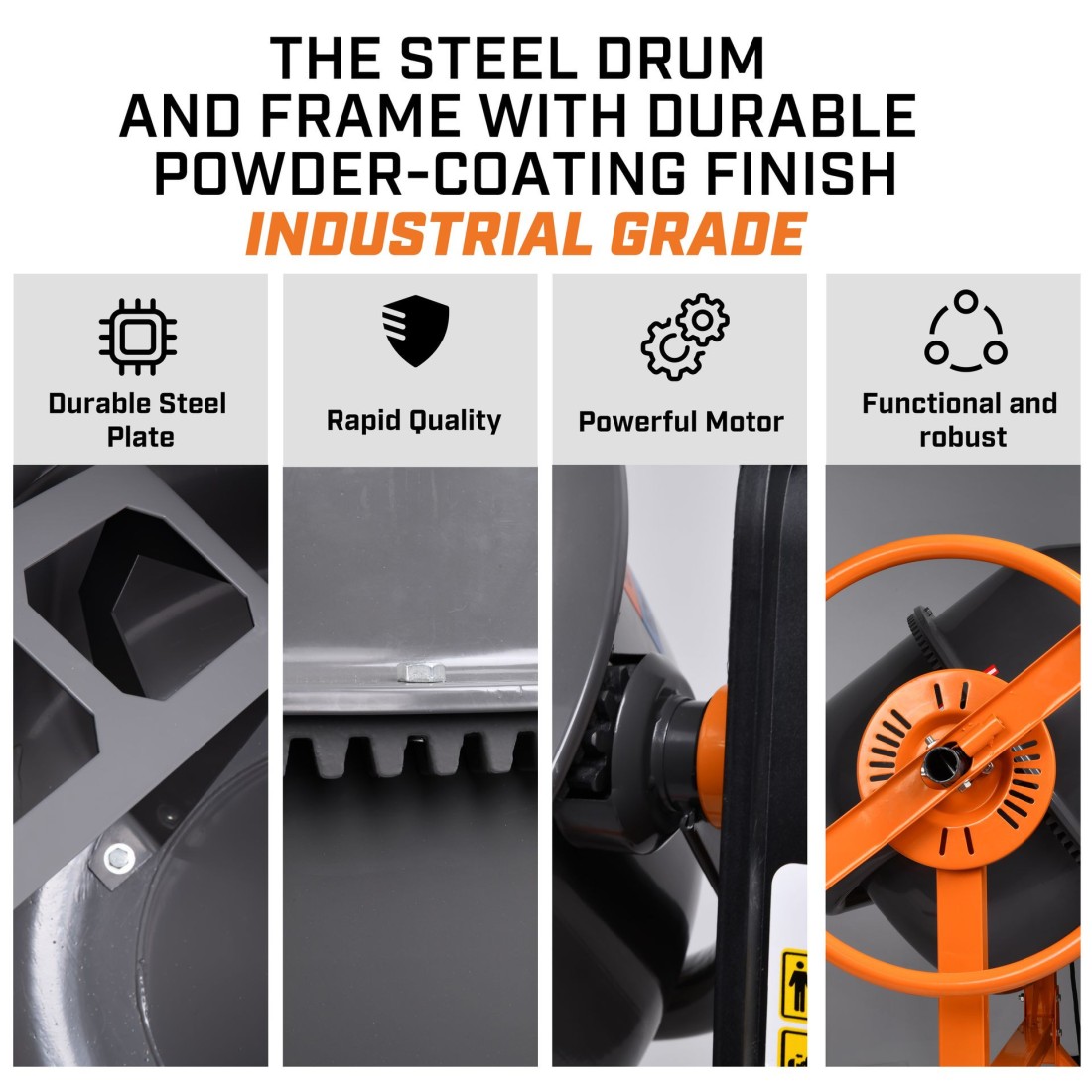 Misturador De Cimento Kcm 45-120 L, 4,2 Pés Cúbicos, 3/5hp — Resiliência e potência | Confiabilidade para trabalhos pesados