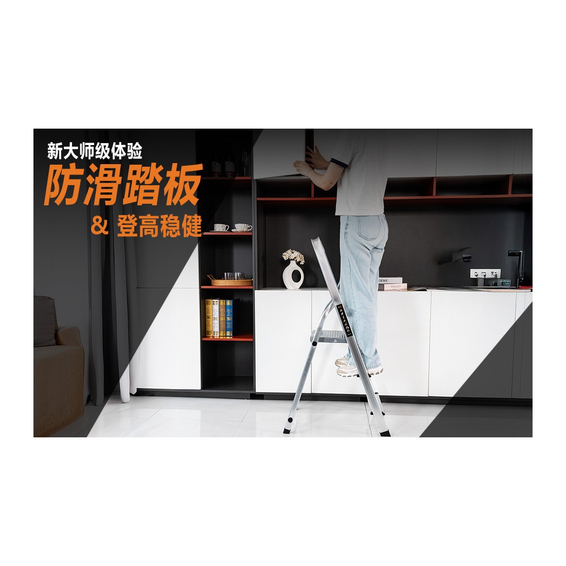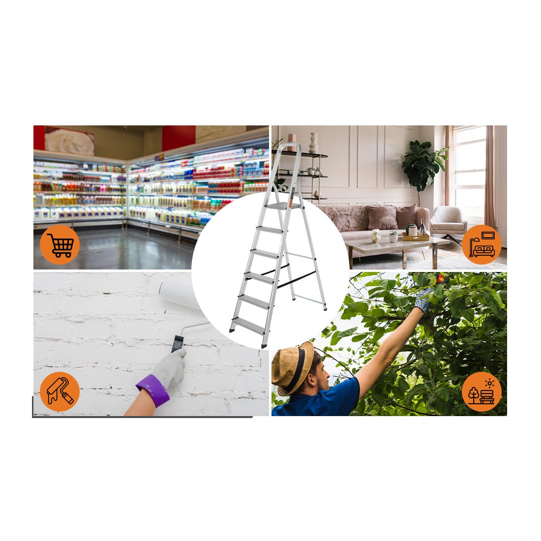 Projetada para tarefas do dia a dia com segurança e praticidade, esta escada doméstica de alumínio oferece subida estável para pinturas, instalações de luminárias, limpeza e manutenção leve em residências, comércios e escritórios.
