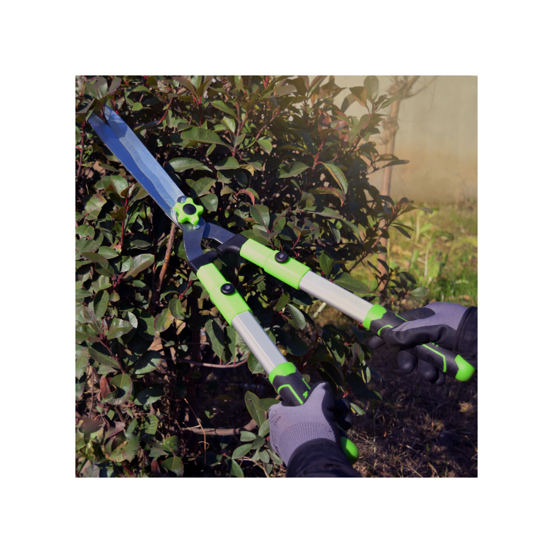 A *Tesoura De Jardim Telescópica Em Alumínio* da KSEIBI é a solução ideal para a poda eficiente de arbustos e cercas vivas. Com uma lâmina de aço SK5 de alta precisão e acabamento polido, esta ferramenta oferece cortes limpos e consistentes, mesmo em plantas mais densas, garantindo resultados impecáveis.