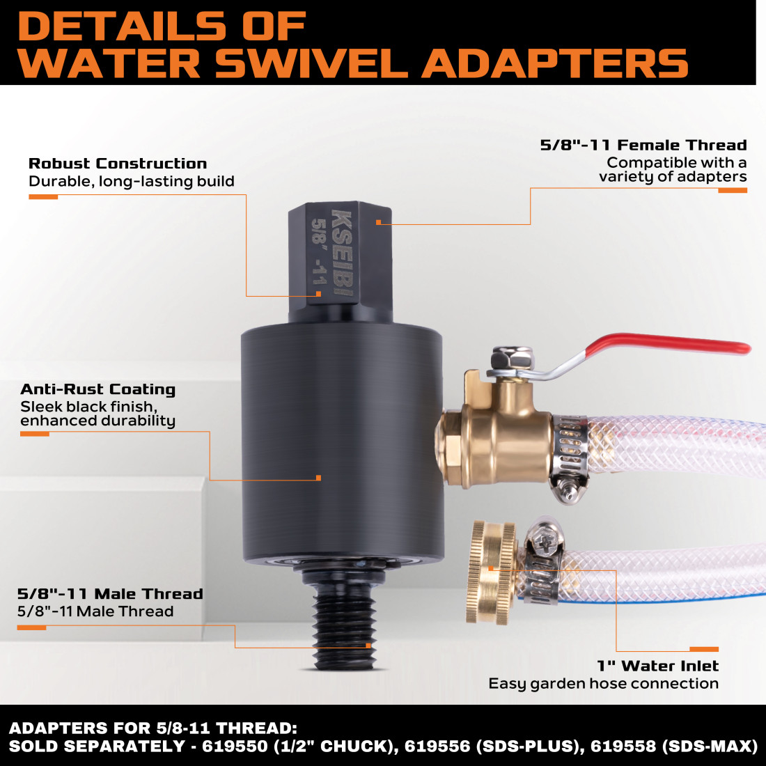 Sizes : 5/8"-11 | 1-1/4"-7Adaptador De Giro De Água De Núcleo Úmido De Diamante 1-1/4"-7