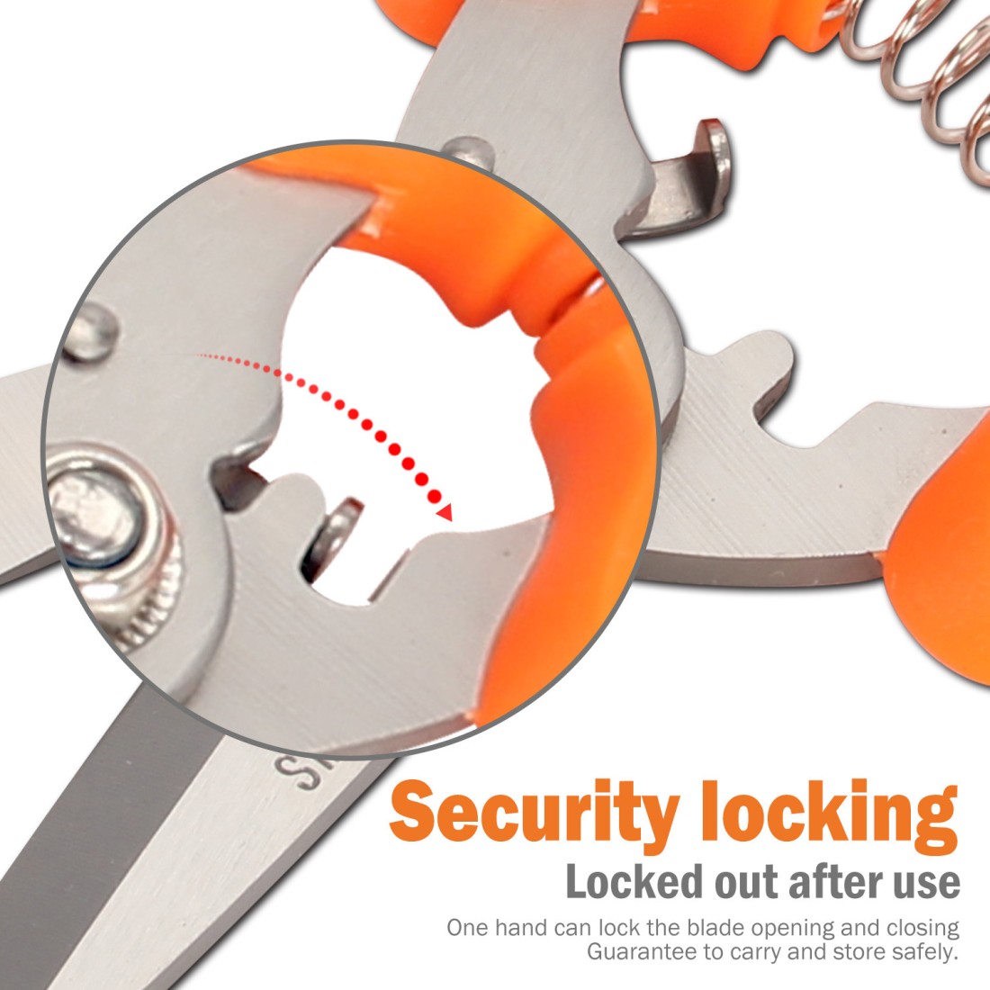 Foarfeca de grădină dreaptă realizată din oțel SK5 de înaltă calitate pentru o durabilitate crescută.