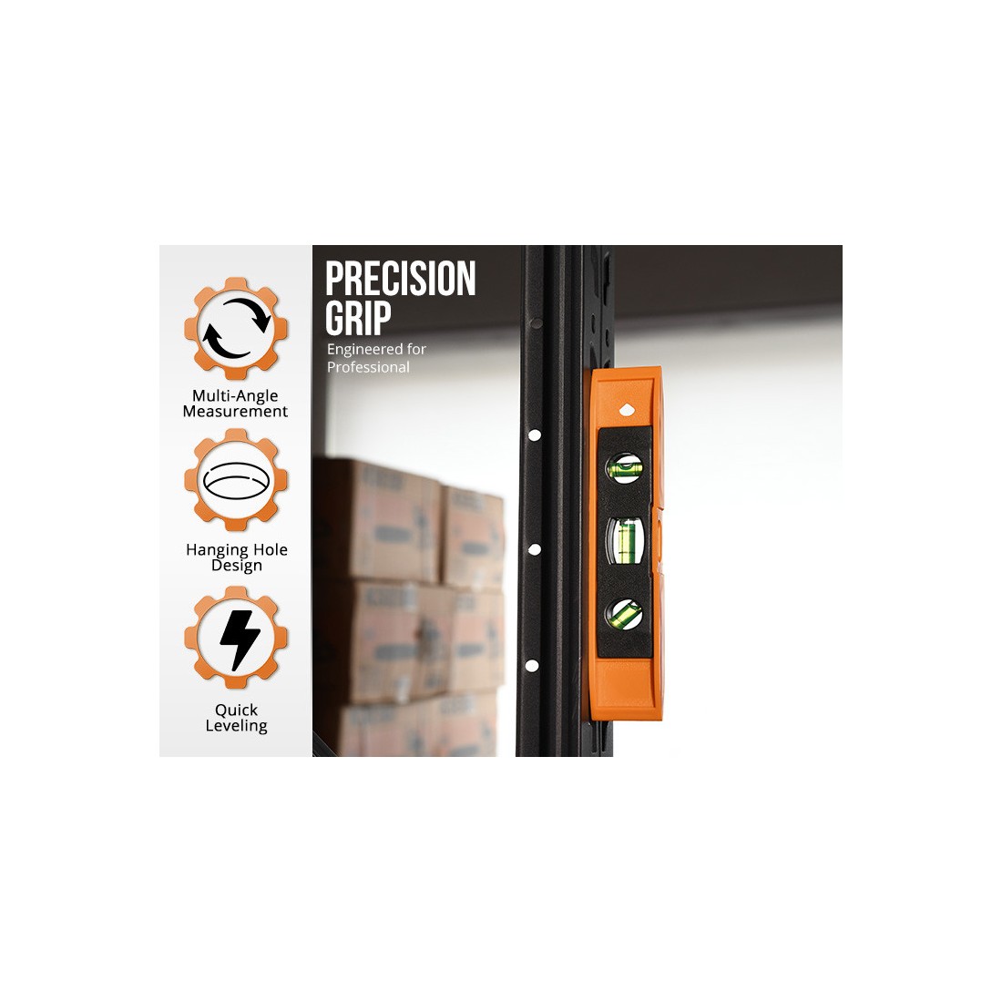 - Оснащён тремя пузырьковыми колбами для точного измерения горизонтали, вертикали и углов.